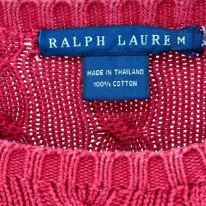 Vintage 90s Ralph Lauren Red Cotton Cable Knit Crewneck Sweater