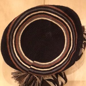 This stylish handcrafted bag features a striking geometric pattern in black and brown tones. Perfect for adding a unique touch to any outfit.