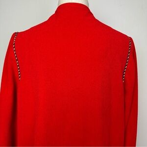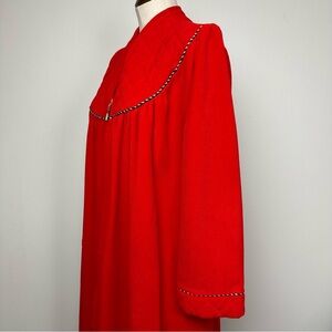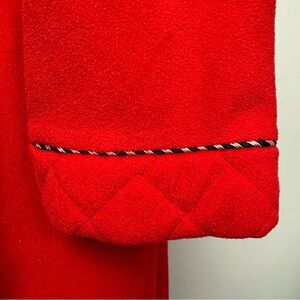 Vintage Vanity Fair red housecoat/robe. Zip closure with tassel pull. Quilted shoulders. Pockets. Contrasting trim.