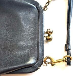 Coach Vintage Rare Bonnie Cashin Kisslock Black Leather Purse Bag Double Strap