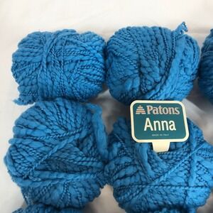 A lot of nine skeins of Patons Anna yarn in Sea Blue. Each skein is 50 grams and contains 54 yards of yarn. This yarn is made from 97% wool and 3% nylon, offering a soft and durable texture for your crafting projects. Perfect for creating cozy sweaters, warm scarves, or unique home decor items for autumn or winter.