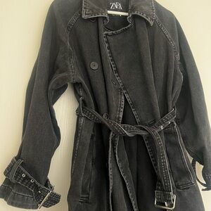 Zara Charcoal Denim Belted Coat