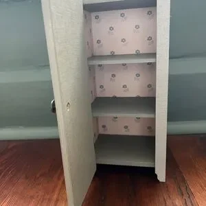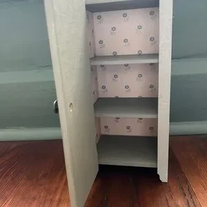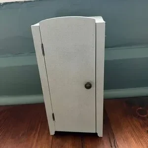 Delight your child with this charming miniature furniture vintage closet from Maileg. Perfect for dollhouse play, this grey/mint closet adds a touch of elegance to any playtime. Encourage imaginative play with this beautifully crafted accessory. This item is retired. Great pre-owned condition! Size is approximately 4” x 9”. Comes in original box. Check out my other Maileg listings to bundle and save!