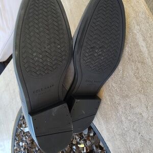 Cole Haan gray suede boots, size 8 M, thick black sole, 1 1/2 inch heel, excellent condition, zippers at the back of the heels, stretch on each side, slip on boots