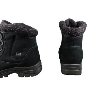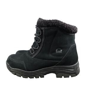 Used Sorel Boots Womens 8.5 Shoes Waterfall Low Lace Up Leather Winter Snow Black Waterproof Insulated