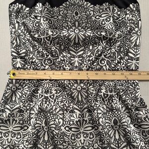 WHBM Black and White Print Satin Strapless Dress Size 12