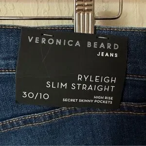 NWT VERONICA BEARD Ryleigh Slim Straight High Rise Jeans Bright Blue Raw Hem 30
