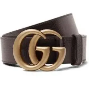Elegant dark brown belt with iconic gold GG emblem. Adds sophistication to any look.