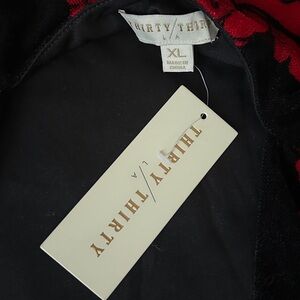 Thirty Thirty LA Black Red Floral Mesh Bell Sleeve Bodycon Mini Dress Size XL