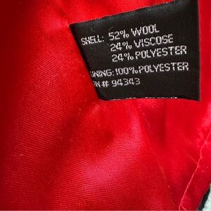 Beautiful red satin lining. Two front open pockets. Big black button front closure.