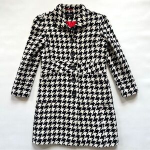 COFFEESHOP BLACK/WHITE HOUNDSTOOTH WOOL BLEND TAILORED PEACOAT TRENCH COAT SzL