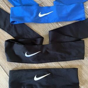 Collection of Nike headbands in vibrant blue and classic black. Features signature logo. Excellent condition!