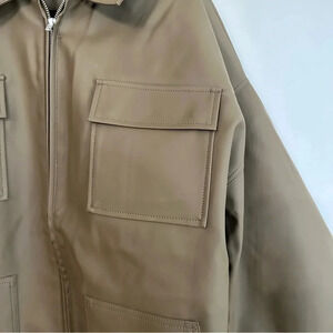 Good American Leather Chore Zipper Front Collared Jacket Size 4, XL NWT
