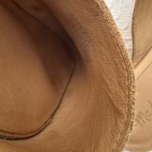 These Madewell mules feature a sleek pointed-toe design in a versatile tan color, perfect for adding a touch of elegance to any outfit. Crafted with a smooth, matte finish, they offer a minimalist silhouette that complements various styles. The slip-on design ensures easy wear, making them a practical choice for everyday elegance.