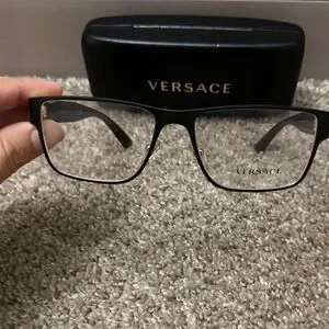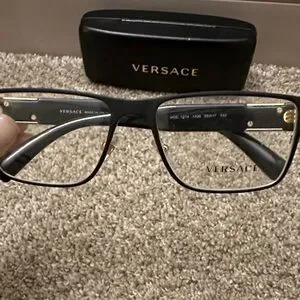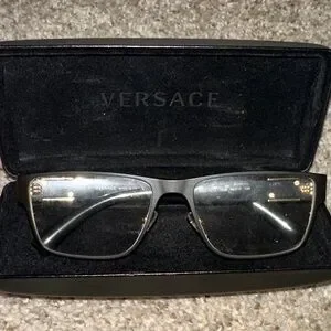 Elegant black eyeglasses with gold accents. Includes Versace case.