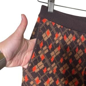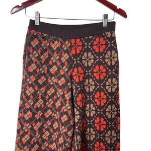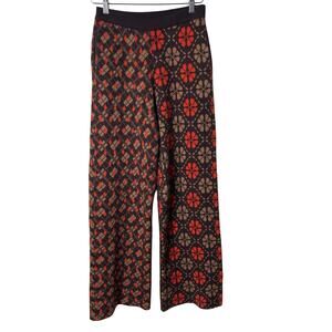 Lingua Franca Brown Orange Wool Cashmere Knit Jacquard Pants XS