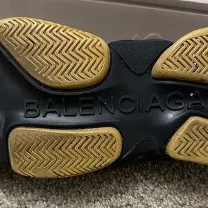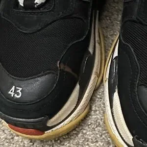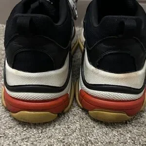 Bold Balenciaga sneakers with black and red accents. Stylish and comfortable for everyday wear.