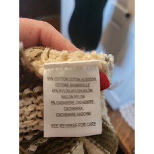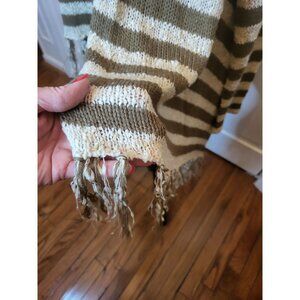 Olive/Ivory Stripe Sweater Cashmere/Cotton Blend Fringe S/M Boho Neutral n