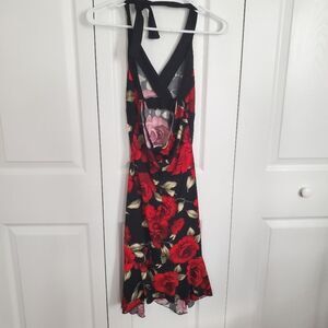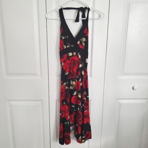 Vintage Perseption Floral Rose Halter Dress Fitted with Ruffle Bottom