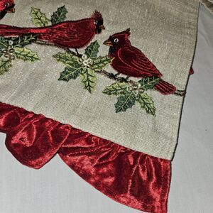 The Embroidered Red Cardinals Christmas Table Runner 70"x13" Holiday Decor Gold