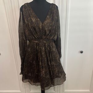 Kurt Thomas Silk Leopard Print Dress with Slit Sleeves Size 8