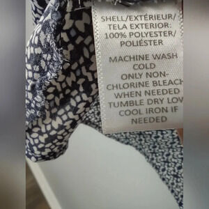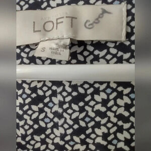 Loft cap sleeve S blouse front tie black white blue, business, office attire