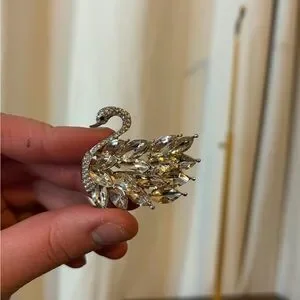 Sparkling crystal swan brooch with silver accents. Perfect for adding elegance to any outfit.