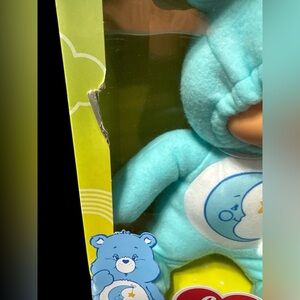 (14 INCHES) Charming Care Bears doll in light blue. Features a cute moon design. Ideal for cuddling and play.