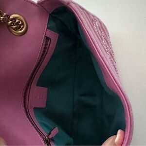 AUTH Gucci Pink Velvet Crystal GG Marmont Cossbody Shoulder Bag