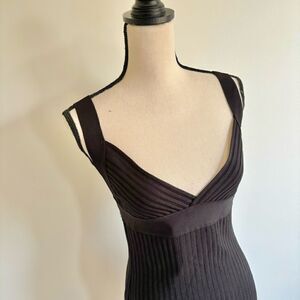 House of CB Anahi Black Bodycon Ribbed VNeck Bandage Dress Sz M NWT