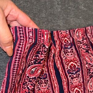 Embrace a bohemian vibe with this stunning paisley print skirt. Featuring a vibrant red and blue design, this skirt is perfect for adding a pop of color to your wardrobe. Ideal for casual outings or a day at the beach.
