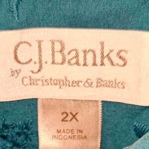 CJ BANKS Plus Size Teal/Green Short Sleeve Open Knit blouse.