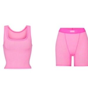 SKIMS Bubblegum Pink Cotton Ribbed Boxer Shorts Size Medium