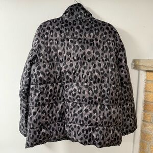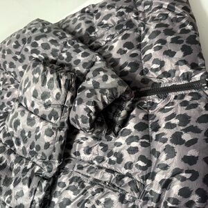 Warm and lightweight, leopard print puffer jacket, in excellent condition.