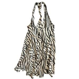 Pyramid Collection Zebra Print Sleeveless Open Front Vest T-Back Women’s Large