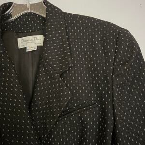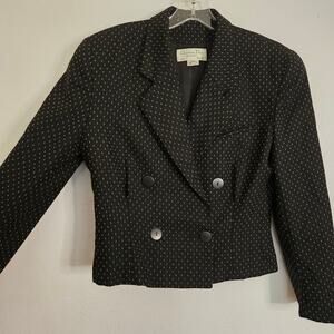 Vintage Christian Dior 80s Wool Blazer 6 Black White Dot Cropped Double Breasted