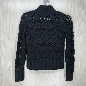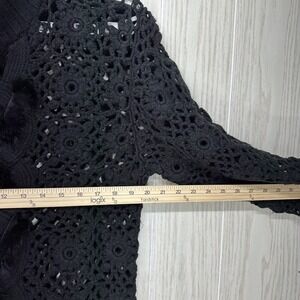 Great Cavalier by St Paul Cardigan Women Large Black Crochet Full Zip Fur Detail