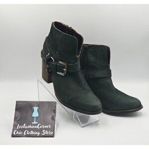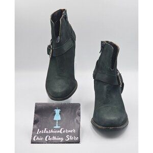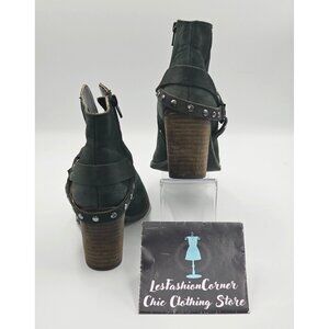 Matisse Women's Gray Leather Harney Heeled Ankle Boots Studded Strap Sz7.5 2919