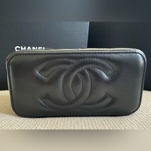 Chanel Black Quilted Vanity Case with Gold Hardware