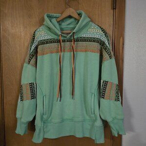 Free People Sprint To The Finish Geo Logo Hoodie Womens S Sour Apple Combo Green