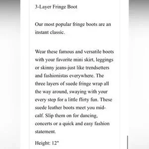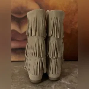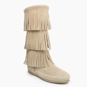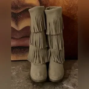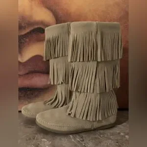 Minnetonka 3 Layer Fringe boots. Soft suede material. Perfect for a boho look.