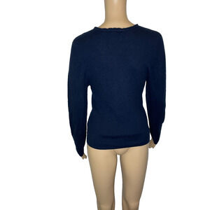 Women's Large Quince 100% Mongolian Cashmere Navy Blue Ribbed Sweater
