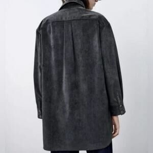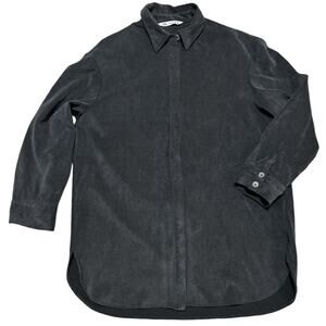 Chic charcoal button down. Long sleeves with a relaxed fit. Ideal for versatile styling.