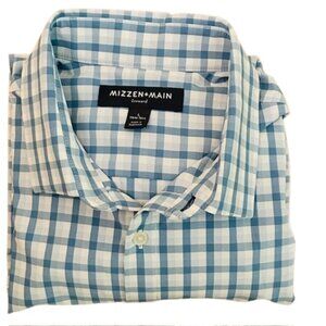 Mizzen+Main Stretch Sport Dress Shirt Leeward Trim Fit Blue Plaid Large Tall