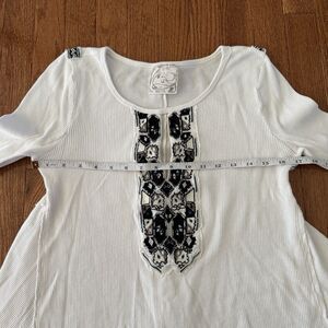 Free People Shirt Womens Medium Waffle Knit Thermal Embroidered Long Sleeve Boho