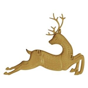Uplift your seasonal decor with an amazing piece, the Metallic Leaping Deer Wall Decor from Wondershop™. This gold-tone wall decor is designed in a leaping deer, complete with antlers for realistic appeal. Made with metal, this leaping deer wall decor adds artful flair to your home. Simply place it on the wall just above the mantel or table, and add bottlebrush trees and other decorative pieces for a festive display