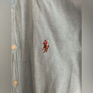 Rare vintage Ralph Lauren Custom Fit long sleeve shirt in a light blue (the colour isn’t coming up quite right. It’s more of a lighter sky blue and not as dull). Features a unique band collar / grandad collar, button front, and embroidered polo pony logo with colour. Tagged size XXL. 100% cotton. This style was popular in the early 2000s (Y2K era) and is a harder-to-find Ralph Lauren piece, especially in Custom Fit and larger sizing. Great for layering, casual wear, or collectors of vintage Polo Ralph Lauren. Please see photos for measurements