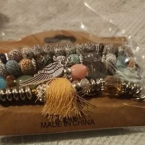 Elevate your style with this chic beaded bracelet set. Featuring a blend of green(teal), pink, and silver tones, these bracelets add a touch of elegance to any outfit. Perfect for any occasion.