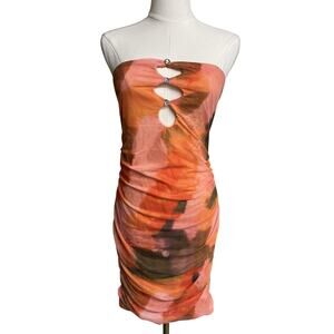 Strapless Chiffon Mini Dress Size Medium Cut Out Rhinestones Club Bodycon