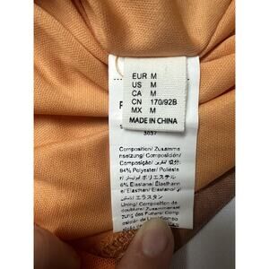 The product is a stylish Strapless Chiffon Mini Dress in a vibrant orange color, perfect for parties or club events. The dress features a tie-dye pattern, rhinestone accents, and a cut-out design, adding a touch of sexuality to the bodycon style. Made of polyester chiffon, this short dress is machine washable and ideal for the summer or spring seasons. Perfect for women looking to make a statement with their fashion, this dress embodies a beachy, colorful, and sexy vibe.